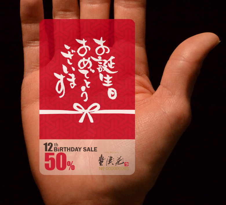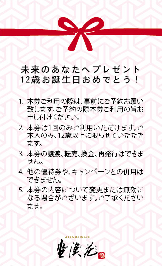 獻給12歲的大童的未來卡,以日本祝賀之紅白蝴蝶結搭配日文毛筆書寫的生日快樂,表達對小貴客的祝福,並用傳統日式交疊織紋呈現日本風味。