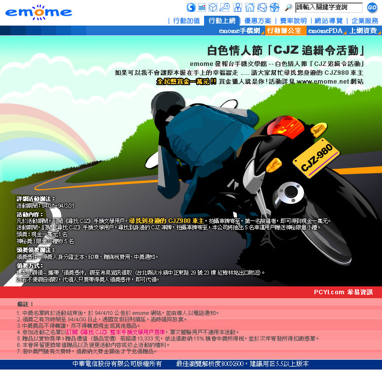 與中華電信emome合作的白色情人節活動。