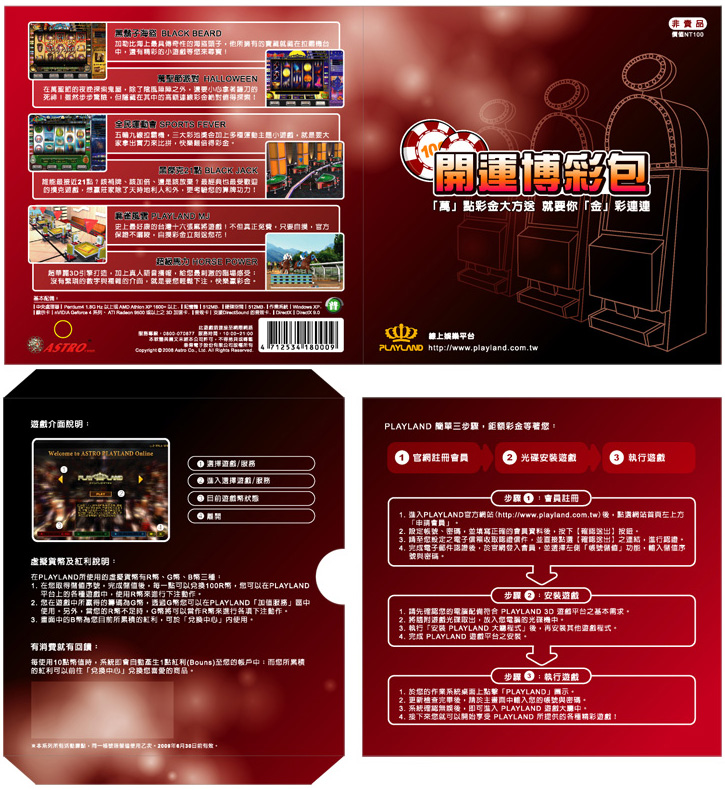 線上博奕遊戲平台PLAYLAND開站的安裝光碟產包設計。